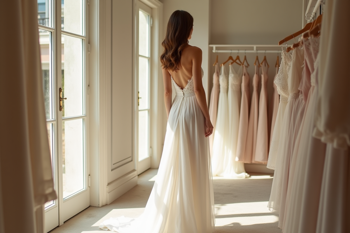 L’essayage en atelier n’est pas un caprice : la coupe demande précision, retouches, et conseils pointus sur les accessoires. Parfois, un voile court, des sandales fines ou une veste légère suffisent à signer un look inoubliable.